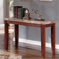 Steve Silver Company - Console Tables - MN700S - The Montibello occasional table set is complete in a cherry finish with marble tops. Frame of tables are wood. Marble tops are multi colored with mostly tans and browns. Table design is plain, letting the beauty of wood and stone hi light these tables. Contemporary style Made of hardwood solids Cherry finish Brown marble top Sturdy wood legs Specifications: Overall dimensions: 30H x 18W x 48D Weight: 83.5 lbs.