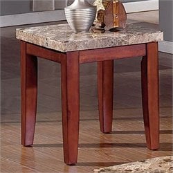 Steve Silver Company - End Tables - MN700E - The Montibello occasional table set is complete in a cherry finish with marble tops. Frame of tables are wood. Marble tops are multi colored with mostly tans and browns. Table design is plain, letting the beauty of wood and stone highlight these tables. Contemporary style Made of hardwood solids Cherry finish Brown marble top Sturdy wood legs Specifications: Overall dimensions: 22H x 24W x 24D Weight: 55 lbs.