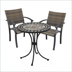 Home Styles - Bistro Sets - 5605341 - 3PC Bistro Set Includes Outdoor Dining Table & Two Newport Arm Chairs. The Bistro Table Features a table top constructed of natural octagon marble tiles with black square marble tile accents; trimmed in a rectangular and square, black marble tile ring. The cabriole designed base is constructed of aluminum in a Black finish. Adjustable, nylon glides prevent damage to surfaces caused by movement and provide stability on uneven surfaces. Size: 28” Diameter x 30” Height. The Newport Arm Chair Features a two-tone, Walnut Brown synthetic-weave seat and back over an aluminum frame in a Black finish. The synthetic-weave is both moisture and weather resistant, and requires very little maintenance. Adjustable, nylon glides prevent damage to surfaces caused by movement and provide stability on uneven surfaces. Seat height measures 18”. Arm height measures 26.25”. All Homes Styles outdoor, casual dining chairs are sold two per pack and are designed to stac k for easy storage. Size: 24.5 x 24.25 x 36Black and Gray finishCabriole designed base is constructed of aluminum in a Black finishTable top constructed of natural octagon marble tiles with black square marble tile accents; trimmed in a rectangular and square, black marble tile ringAdjustable nylon glides on table and chairsChair comes with Walnut Brown synthetic-weave seat and backAluminum frame in Black FinishSet Includes Outdoor Dining Table & 2 Newport Arm ChairsSpecifications:Table dimensions: 30H x 27.5W x 27.5D inchesChair dimensions: 36H x 24.5W x 24.25D inchesSeat height measures 18 inchesArm height measures 26.25 inches