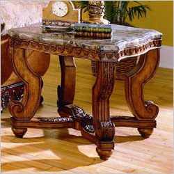 Homelegance - End Tables - 554304 - Boldly radiant with Mediterranean coastal influences and touches of traditional elegance, the Tarantula End Table offers a powerful statement at each side of your sofa. Distinguished by reed and detail-carved legs, equally ornate cross stretcher base and beveled marble table top, the Tarantula has an inimitable character that draws attention. A burnished brown cherry finish completes the unique look and particular appeal of the Tarantula End Table. End Table Features solid hardwood construction End Table has a burnished brown cherry finish End Table Features a distinctive marble table top Detail-carved legs and stretchers Specifications: Overall dimensions: 25 H x 28 W x 28 D